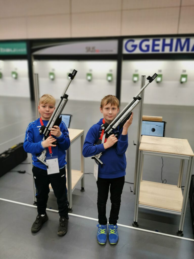 Am Nikolaus-Tag nahmen unsere jüngsten Schützen Elias und Toni in Ruit beim Schüler-Cup und somit dem ersten Wettkampf ihrer noch jungen Schießkarriere teil. Unser Verband, der württembergischer Schützenverband ist sehr engagiert, interessierten Kindern möglichst früh die Möglichkeit zu geben, an Wettkämpfen teilzunehmen. Generell macht es Sinn Kinder ab einem Alter von 8 Jahren mit einem Lichtgewehr oder einer Lichtpistole üben zu lassen. Der Schüler-Cup besteht aus verschiedenen Stationen: Luft- oder Lichtgewehr, Balancieren, Zahlenspiel am Computer, Seilhüpfen und Weitwurf. Die Teilnehmer mit der höchsten Punktzahl bekommen eine Medaille, alle Kinder bekommen ein gratis Essen mit Getränk, ein Urkunde und ein Armband, sowie auch eine 3D-gedruckte Figur. Den beiden Mini-Schützen gefiel es sichtlich gut, auch wenn es noch nicht für eine vordere Platzierung gereicht hat. Bestimmt nehmen die beiden auch nächstes Jahr diese Möglichkeit, weitere Wettkampf-Erfahrung zu sammeln, erneut wahr.